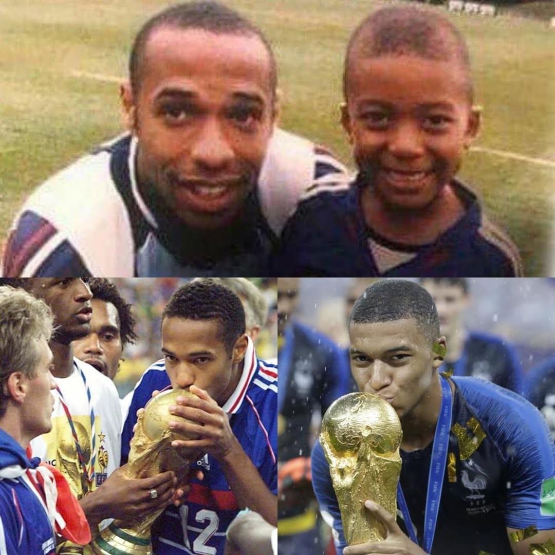 此前姆巴佩曾多次表示,自己十分尊重亨利,并认为亨利的榜样作用在其成长的道路上起到了重要作用。两人均在20岁左右的年纪帮助法国国家队举起了大力神杯。